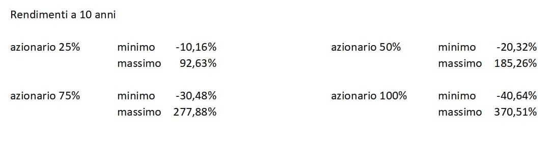 Oltre i 20 anni andrei a puntare su un fondo 100% azionario per rimanere agganciato completamente all'andamento dell'economia reale.